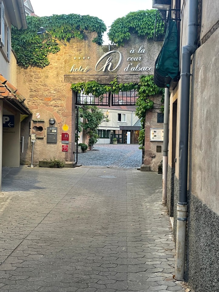 Today’s ride concluded at the Hotel à La Cour d’Alsace in Obernai. This was to be the hotel of many parts, many different buildings.