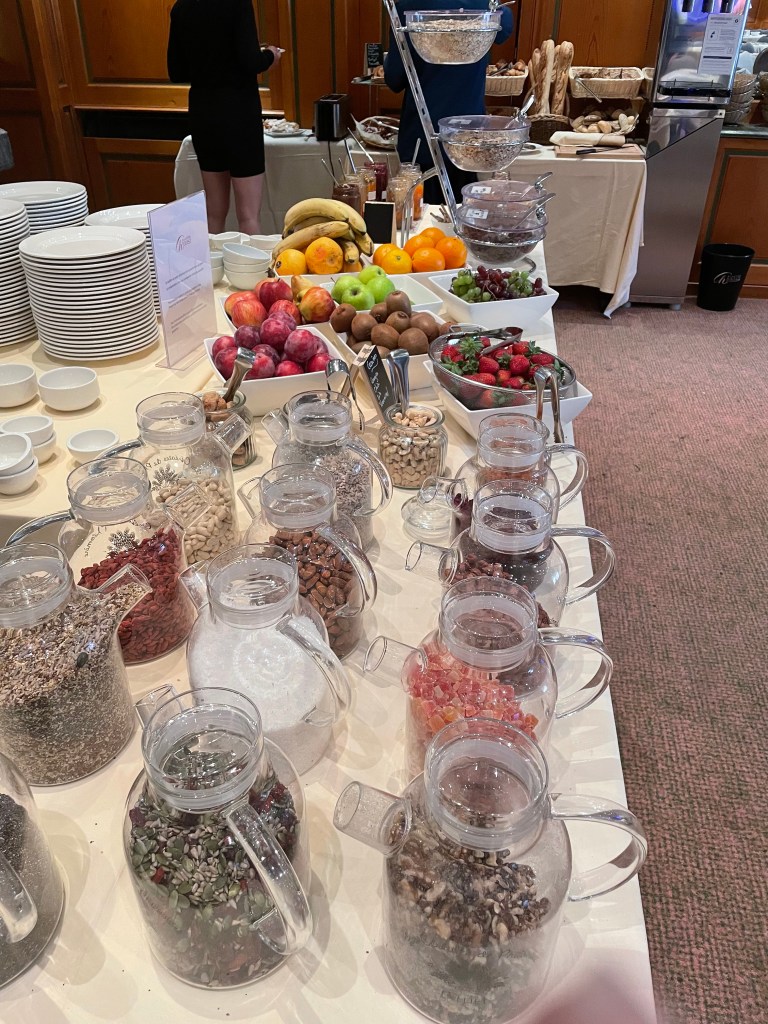 Breakfast this morning was photo worthy. First we have the table of fruits and cereals.