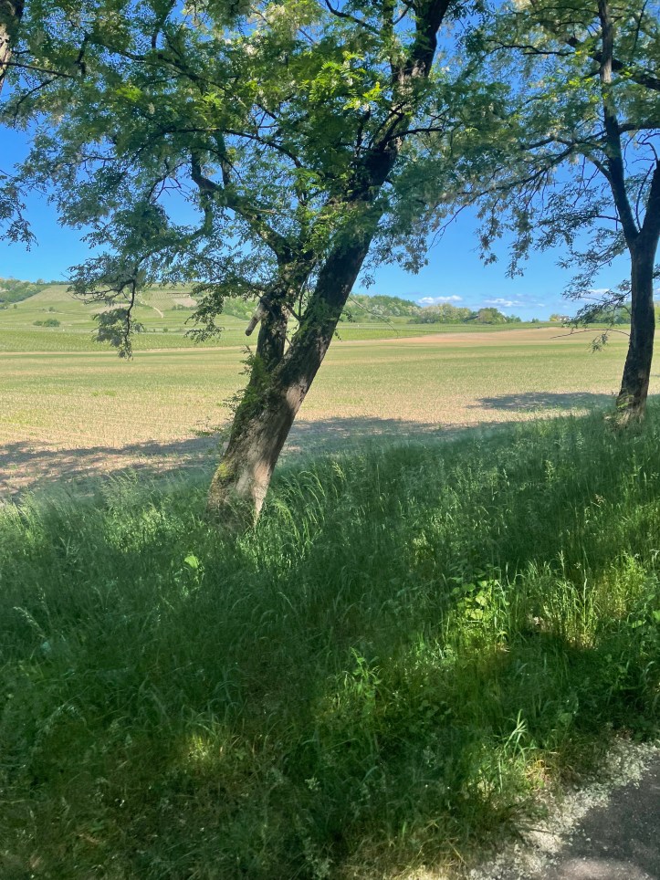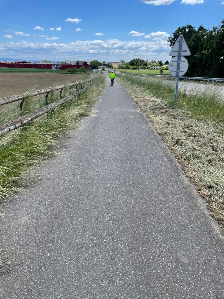 At some point before this photo we stopped to strip off a layer. It was just after going through Barr, about five miles from Obernai.