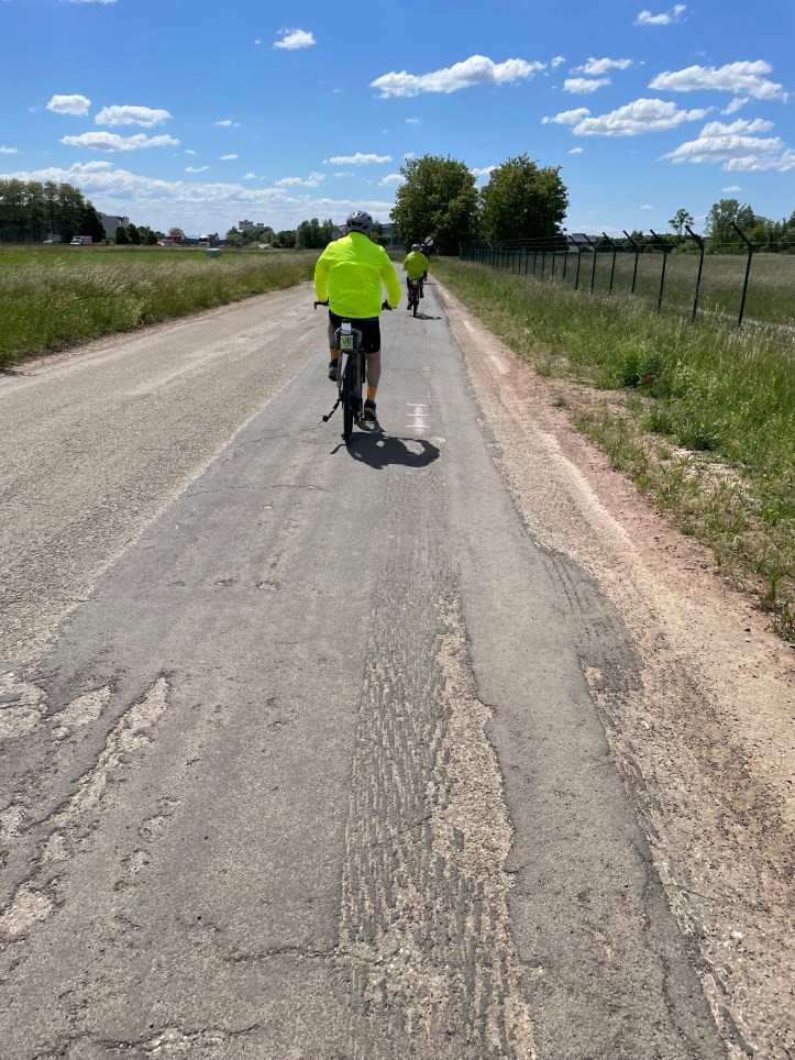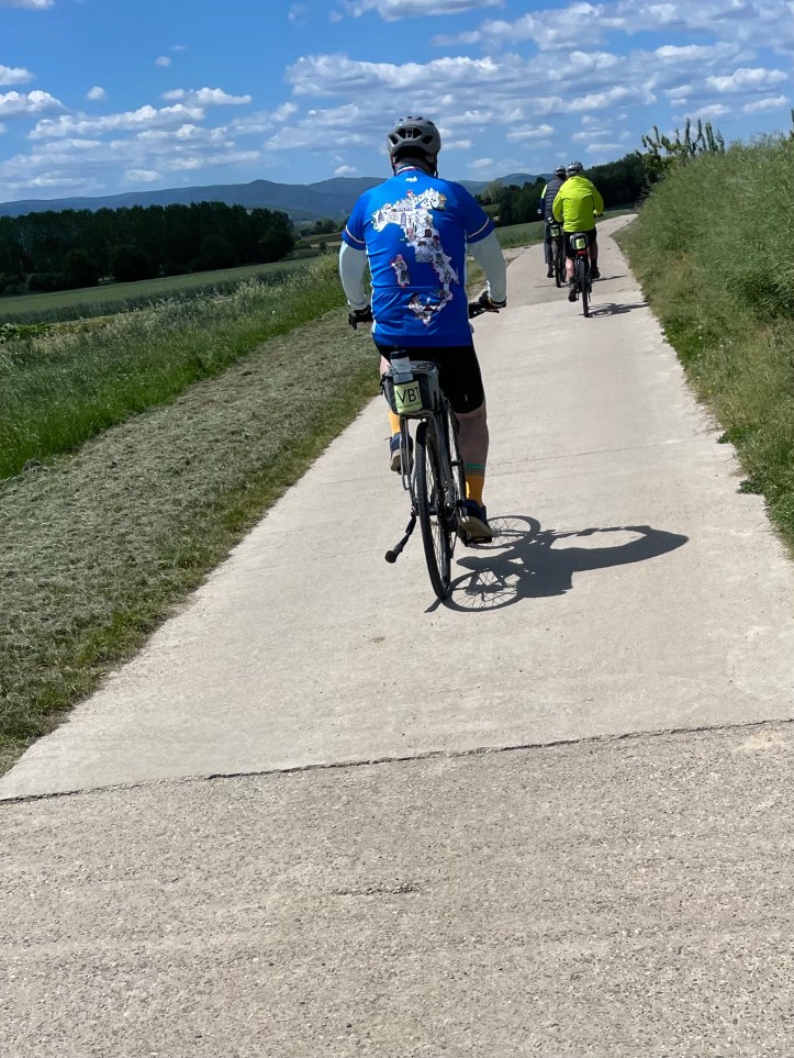 So, off we go. We ride out from the hotel onto cobblestone city streets and have a run at the one hill of the day before we finally get to a smoother bike path.