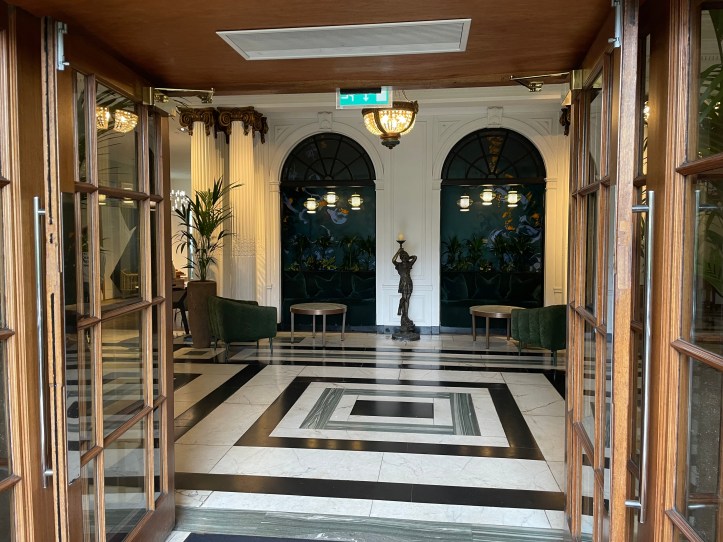 And has a welcoming entrance. After we get home, we watch an episode of Annika and this hotel is featured although it’s placed in Edinburgh.