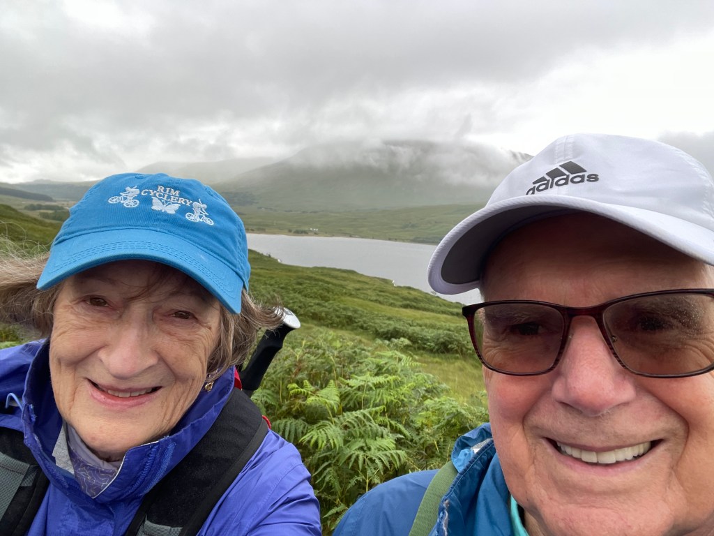 We take a selfie squinting into the wind but it keeps the midges at bay.