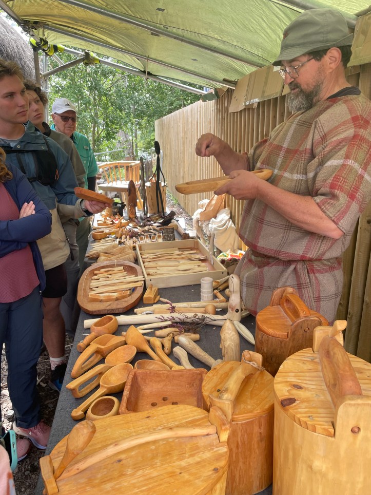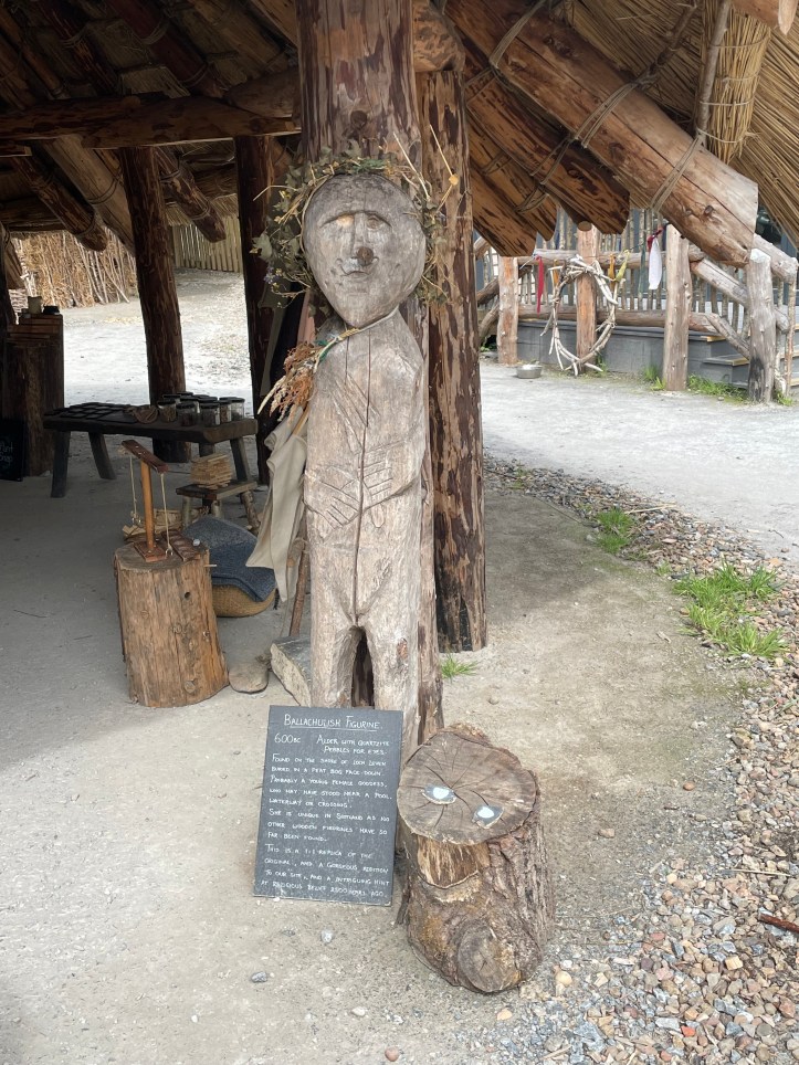 Then more time on the shuttle with a stop at the Crannog Centre. Crannogs are circular, stilted dwellings dating back to the Iron Age. Roads had not been developed yet, and therefore, homes were often built in the water and reached by boat. Some crannogs have been constructed at the Centre and there are also displays of critical skills during that period including fire-making, textile weaving, and wood-carving.