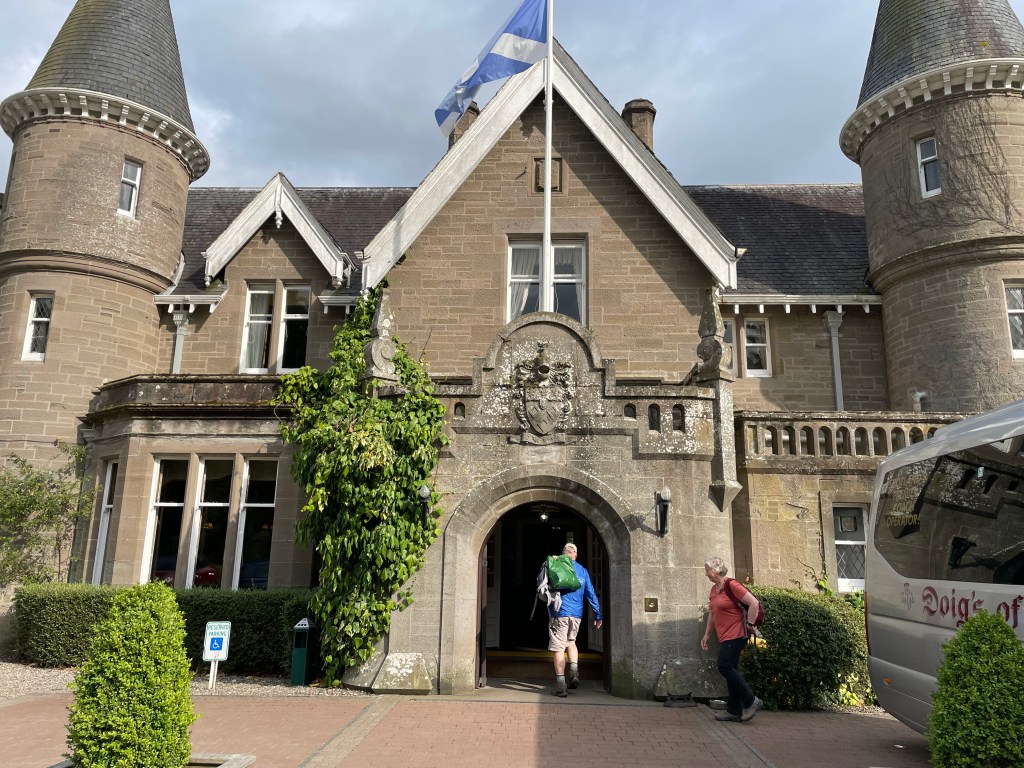 Leaving here, we have a one-hour drive to our next accommodation, the four-star Ballathie House Hotel in Kinclaven on the River Tay. The hotel was built in 1880 and currently has 53 bedrooms.